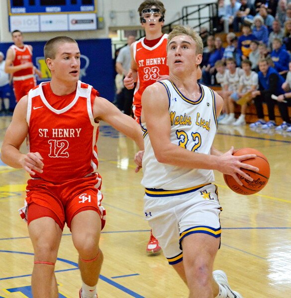 ST. HENRY - St. Henry and Celina battled for the first half to the tune of a 20-18 game. The third quarter saw the Redskins pull away and never look back in a 41-30 win over the Bulldogs at Redskin gymnasium.