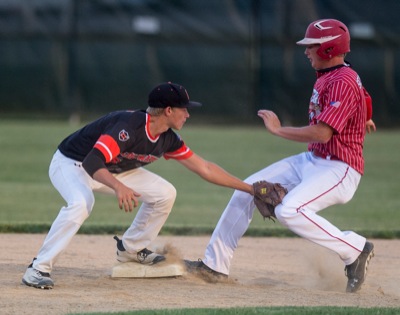 Lorain County used a seven-run eighth inning to break a 4-4 tie and then held off a Grand Lake rally in the top of the ninth to snap the Mariners' three-game win streak with an 11-9 decision on Friday night at The Pipeyard in Lorain.