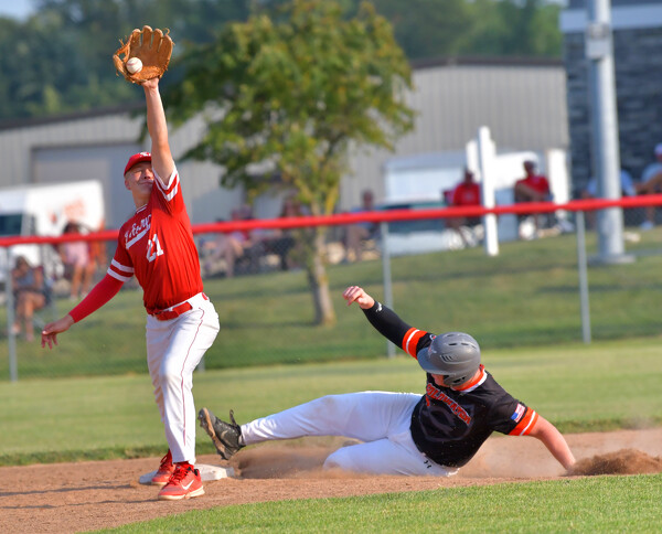The St. Henry Junior ACME team scored four runs in the top of the sixth inning and held off a seventh-inning comeback by Marion Local for a 9-6 win at the state Junior ACME tournament quarterfinal on Monday at Ed Sandy Field in Elida.