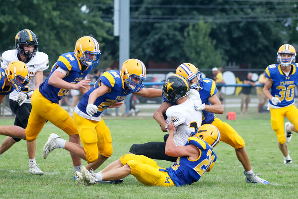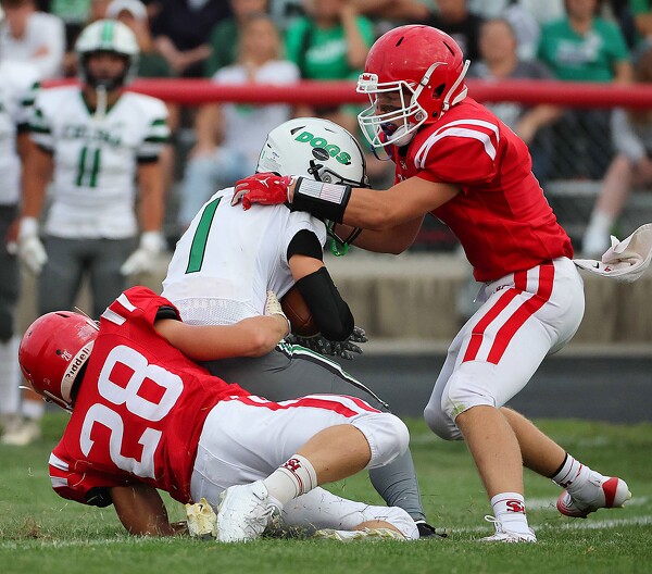 That spark came from Jack Huelsman, whose 76-yard punt return in the final 40 seconds of the first half helped spark the Redskins in the second half en route to a 31-7 victory over the Bulldogs at the Wally Post Athletic Conference in the first gridiron meeting between the Mercer County schools. [