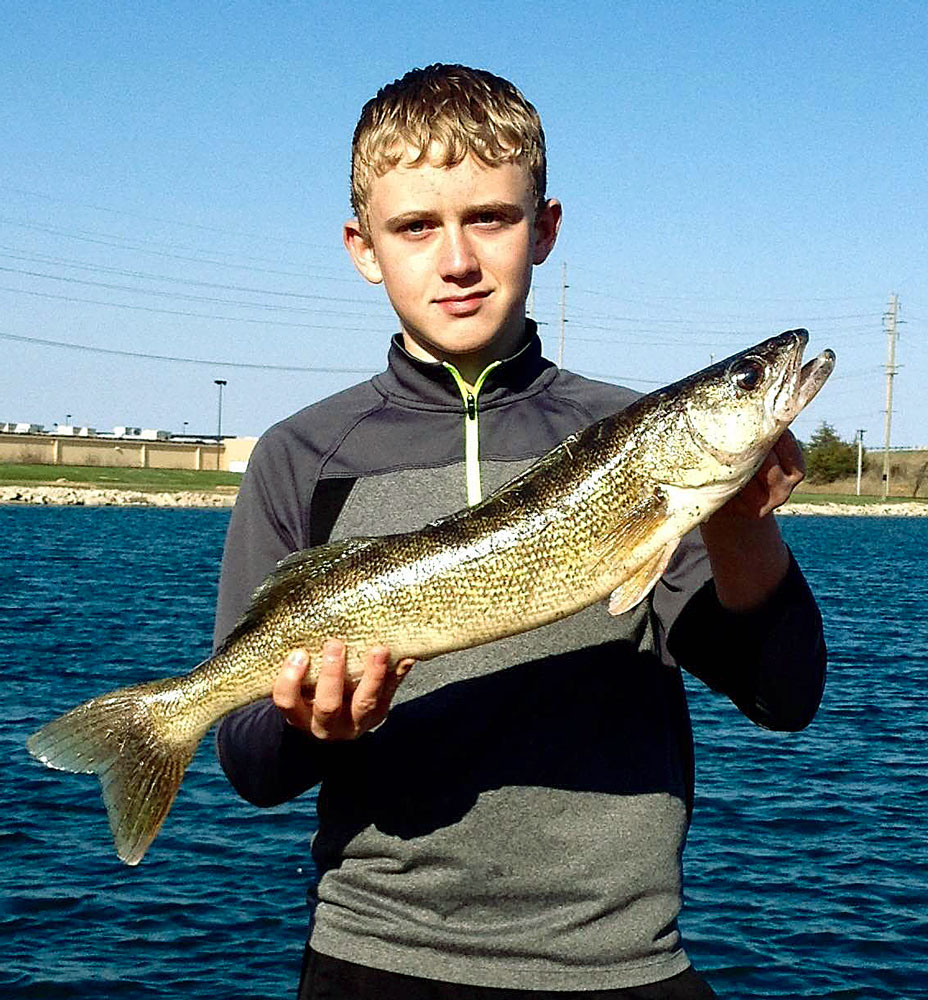 Josh King, 15, Celina, pulled in two whoppers on Thursday night at Celina’s Eastview Park pond. Included in his haul was this 27 inch walleye.
